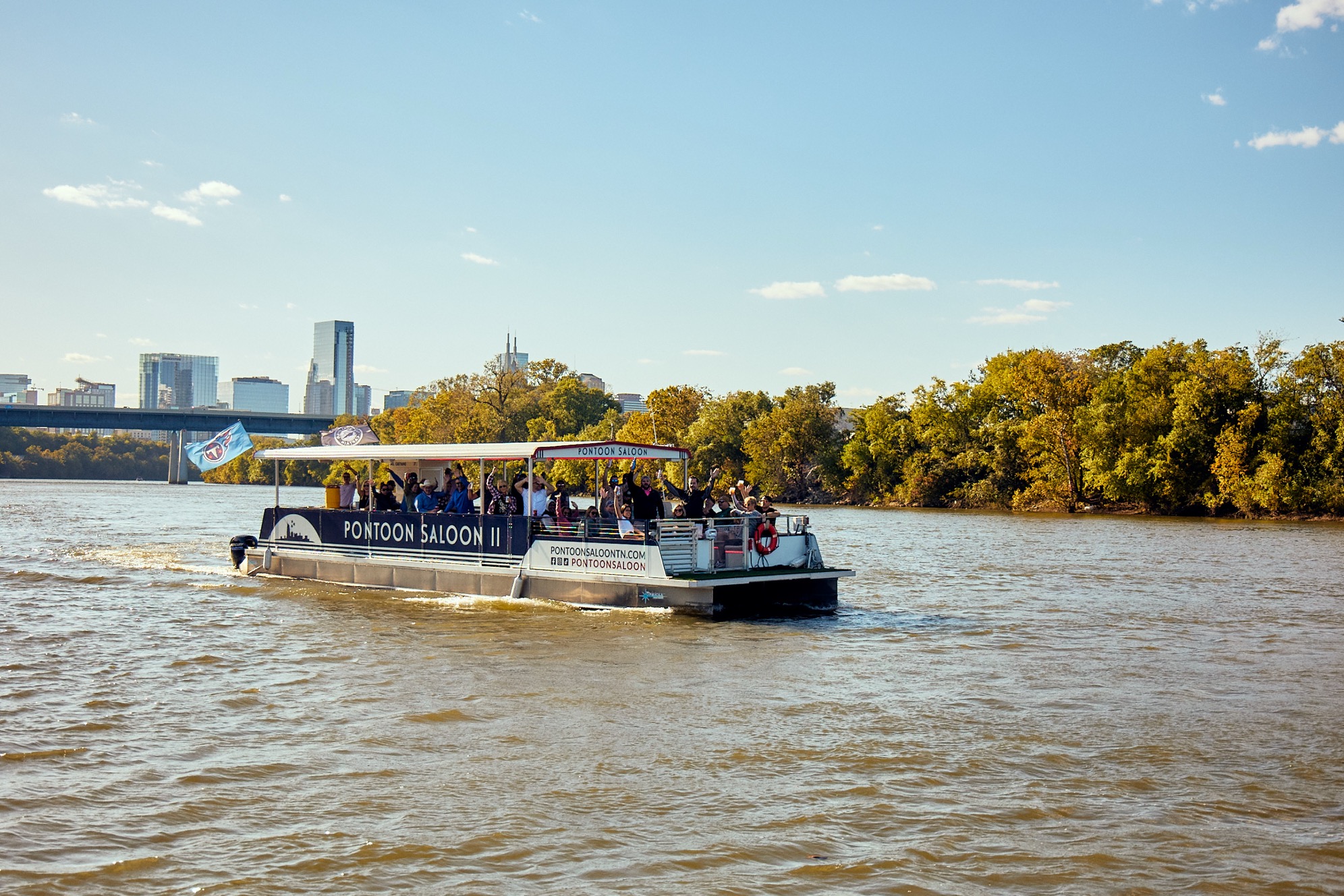 A private river cruise in Nashville on the Pontoon Saloon gives you your own luxury pontoon on the Cumberland River for up to 130 guests. Every private cruise includes a USCG Licensed Captain, custom beverage packages, catering options, and a dedicated event coordinator. Perfect for corporate events, weddings, birthdays, and celebrations. Available 7 days a week, departing from Riverfront Dock East at 2 Victory Ave.